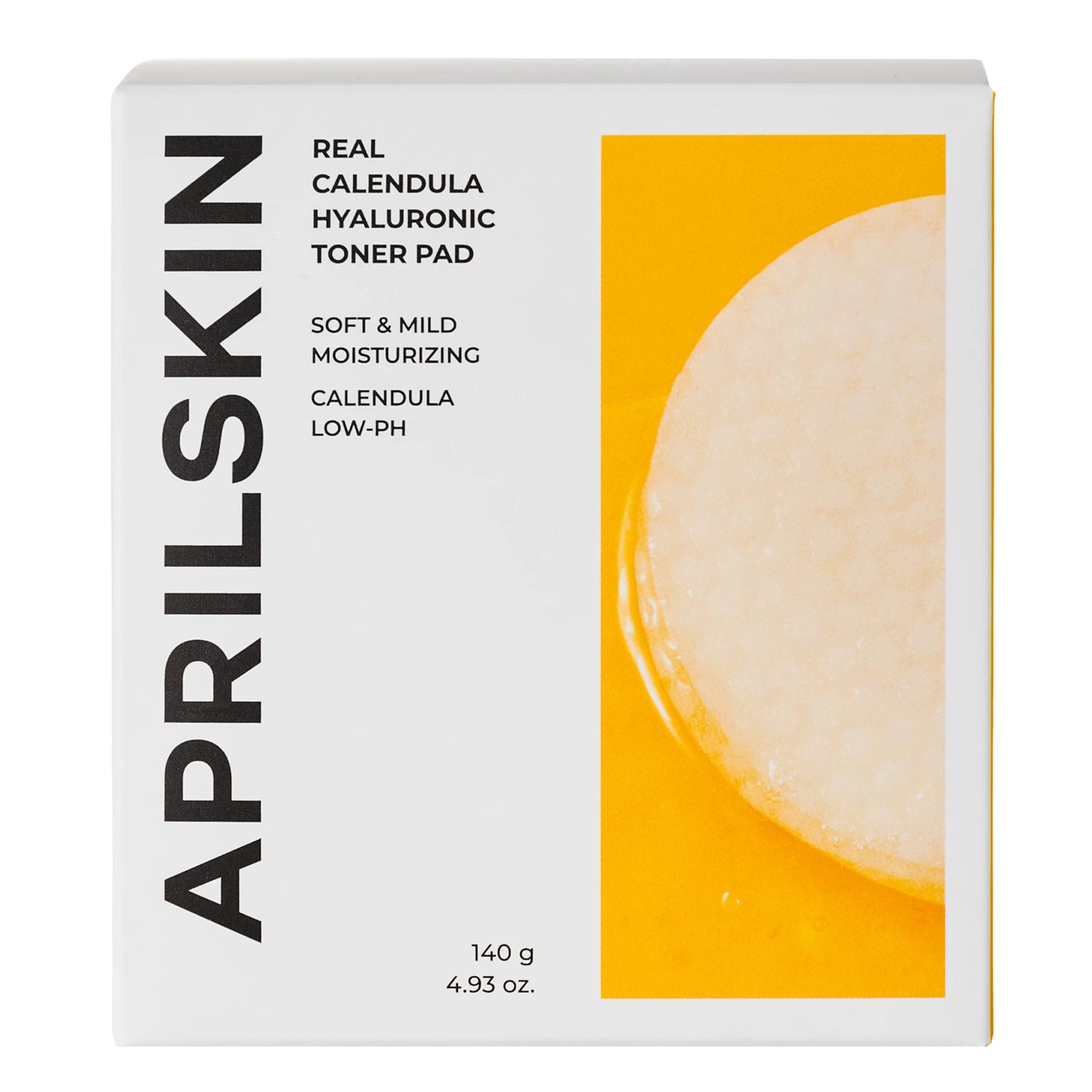 Aprilskin – Real Calendula Hyaluronic Toner Pad – dischete îmbibate cu esență tonică, cu efecte suplimentare de hidratare, exfoliere delicată și reducere a porilor dilatați. Formula pe bază de extract calmant de gălbenele reduce inflamațiile pielii și redă senzația de confort. În plus, conține 0,1% glucanolactonă, un exfoliant delicat, și acid LHA, cu efect seboreglator, ce ajută la combaterea punctelor negre și albe. Extractul de centella asiatică stimulează și accelerează procesele de regenerare ale pielii, iar hialuronatul de sodiu, ingredientul principal, oferă hidratare intensă. Drept urmare, dischetele nu doar tonifică pielea – adică restabilesc pH-ul optim – ci și netezesc suprafața pielii, reduc porii dilatați, hidratează intens și redau strălucirea sănătoasă a tenului. Ambalajul conține 60 de dischete cu două fețe: una netedă și una texturată, pentru utilizări variate. Produsul este generos impregnat cu esență tonică și include o pensetă pentru extragerea igienică a dischetelor. Esența are un parfum floral delicat. Dischetele pot fi utilizate de două ori pe zi, dimineața și seara, și pot fi păstrate la frigider pentru un efect răcoritor mai intens.