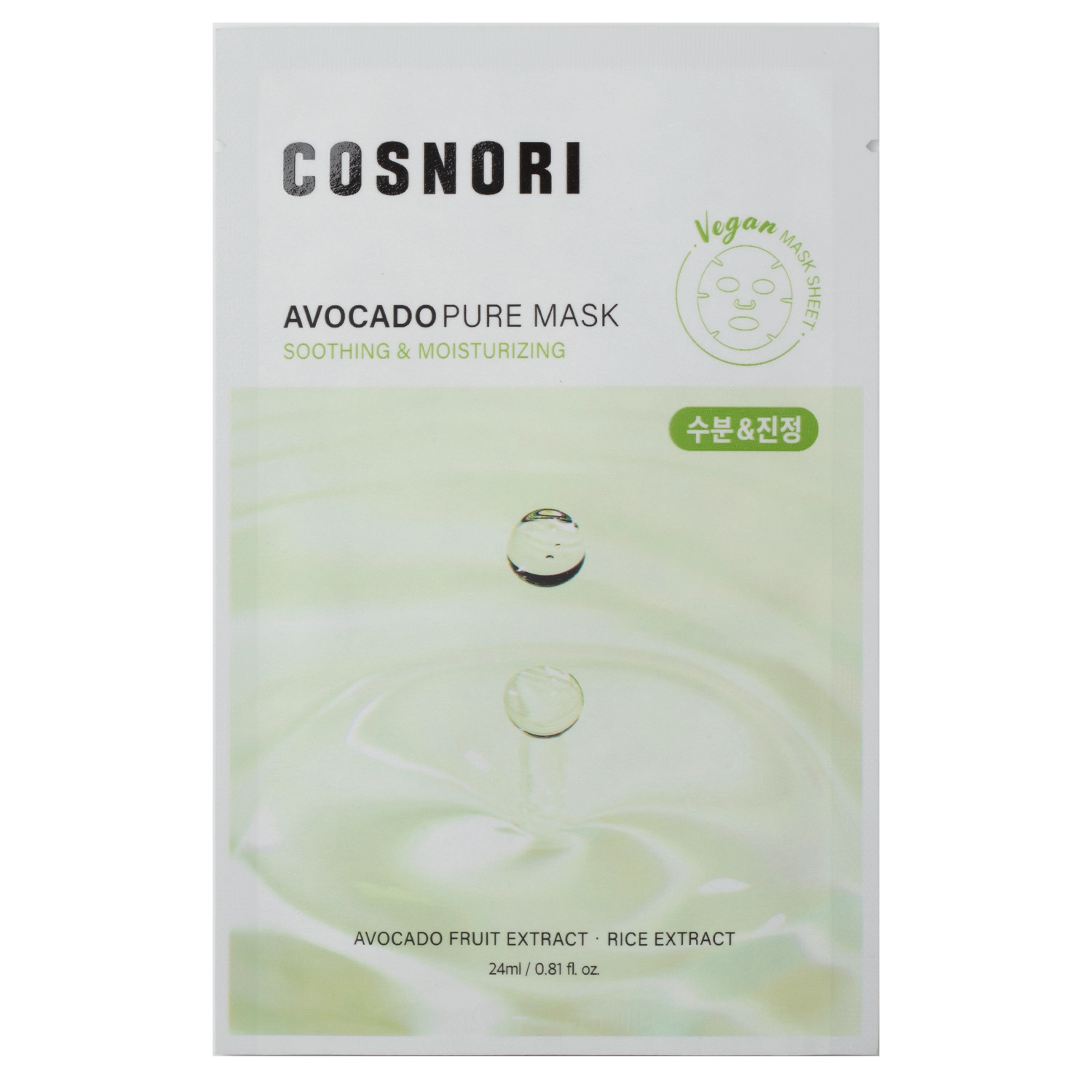 Cosnori – Avocado Pure Mask este o mască pentru față cu acțiune nutritivă și hidratantă. Produsul este recomandat pentru toate tipurile de ten, în special pentru pielea aspră, deshidratată, uscată și iritată. Formula cu extract din fruct de avocado oferă o hrănire profundă epidermei, susține regenerarea acesteia și o înmoaie. Adaosul de extract de orez are efect antiinflamator și antiîmbătrânire, iar pantenolul înmoaie pielea și susține bariera cutanată. Compoziția este completată de beta-glucan cu efect de îmbunătățire a elasticității și de uleiul de măsline cu rol ocluziv. După utilizare, pielea devine vizibil mai moale, intens hidratată, plină de vitalitate și cu un aspect luminos.