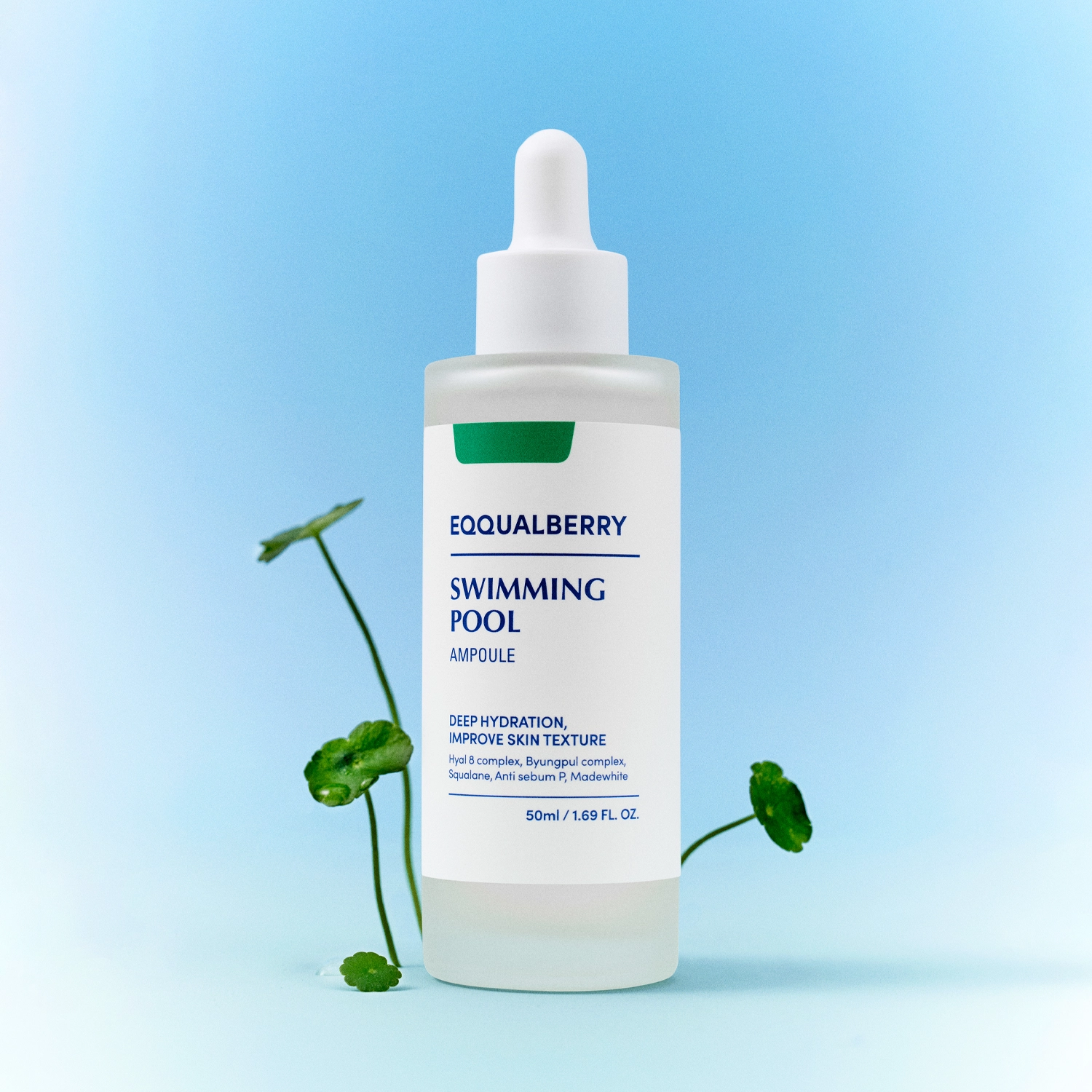 EQQUALBERRY - Swimming Pool Ampoule - fiolă conceput pentru îngrijirea zilnică a pielii feței care necesită hidratare profundă. Squalane conținut în produs formează un film delicat la suprafața epidermului, care protejează eficient împotriva pierderii excesive de apă, oferind pielii hidratare de lungă durată. Extractul de Centella Asiatica și substanțele izolate din acesta au efecte calmante asupra iritațiilor și inflamațiilor, în timp ce pantenolul sprijină regenerarea rapidă a epidermului. Datorită prezenței extractului de Houttuynia cordata, produsul reduce înroșirea și are un efect calmant asupra pielii. Întreaga formulă este completată perfect de complexul de acid hialuronic, care amplifică proprietățile hidratante ale fiolei. Produsul se absoarbe rapid, lăsând pielea netedă și mătăsoasă la atingere.