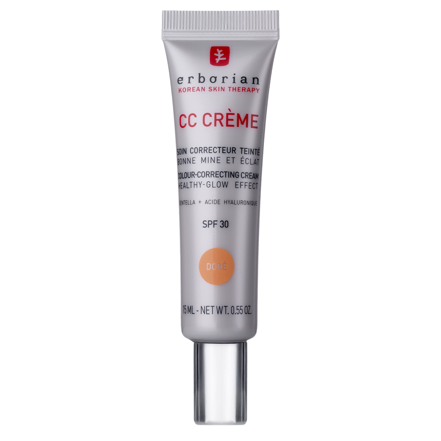 Erborian – CC Crème Centella Asiatica – Dore – cremă CC pentru față cu protecție solară SPF 30. Uniformizează nuanța pielii, estompează imperfecțiunile și roșeața, lăsând un aspect natural și luminos. Pigmenții încapsulați îmbracă pielea într-o textură lejeră și cremoasă, fără efect de mască. Produsul corectează subtil aspectul tenului, oferind un machiaj natural, și susține protecția pielii împotriva radiațiilor UV datorită filtrelor solare. Conținutul de extract din frunze de centella asiatica, hialuronat de sodiu și bisabolol asigură hidratare optimă, calmează iritațiile și redă pielii confortul și senzația de calm. Crema este ambalată într-un tub practic.