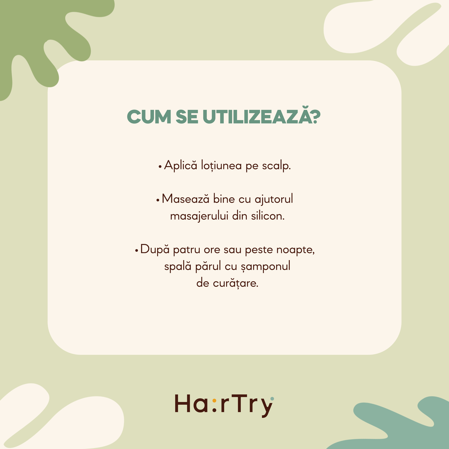 • Breezy Not Greasy: Împărțiți părul în secțiuni și aplicați loțiunea direct pe scalp. Masați delicat cu vârfurile degetelor. Lăsați să acționeze minimum 2 ore, ideal peste noapte. Folosiți de 2–3 ori pe săptămână. Evitați contactul cu ochii.