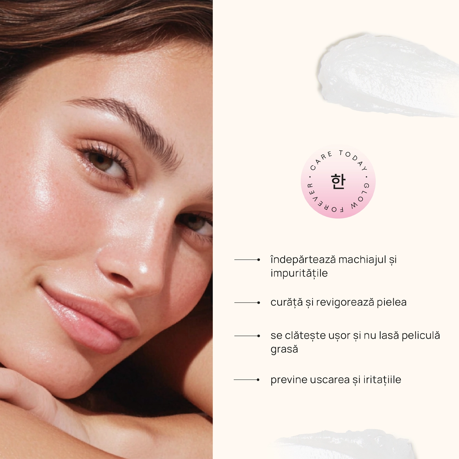 Mod de aplicare: Aplică o cantitate mică de produs pe mâinile uscate, întinde pe piele și masează delicat timp de 1–2 minute. Apoi clătește bine cu apă călduță și continuă cu pasul al doilea de curățare.