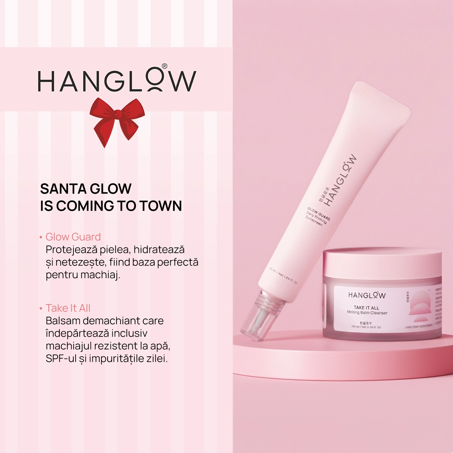 HanGlow – Set Santa Glow Is Coming To Town – box ediție limitată de sărbători, care ascunde un duet ce răsfață pielea de la primul contact, lăsând-o proaspătă, luminoasă și plină de strălucire. Datorită acestei combinații speciale, rutina zilnică de îngrijire se transformă într-un adevărat ritual de plăcere. Setul este, de asemenea, o idee excelentă de cadou și conține: