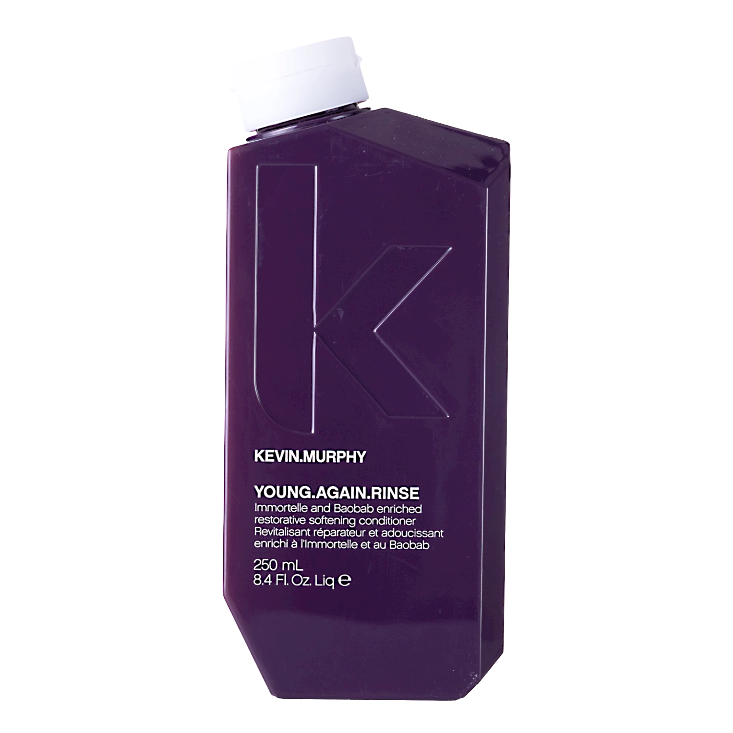 Kevin Murphy – Young Again Rinse – balsam care redă strălucirea părului uscat, deteriorat și slăbit. Conține biotină, care îngroașă firul de păr, îi îmbunătățește elasticitatea și luciul, susținând totodată ritmul de creștere al părului. Sucul de aloe vera, împreună cu pantenolul, hidratează părul și calmează scalpul. Pantenolul reduce tendința de despicare a vârfurilor și fortifică părul. Adaosul de clorhidrat de piridoxină previne electrizarea și netezește firele de păr. În plus, uleiul de baobab creează la suprafața părului un strat protector și netezitor, care împiedică evaporarea umidității, având totodată efect regenerant.