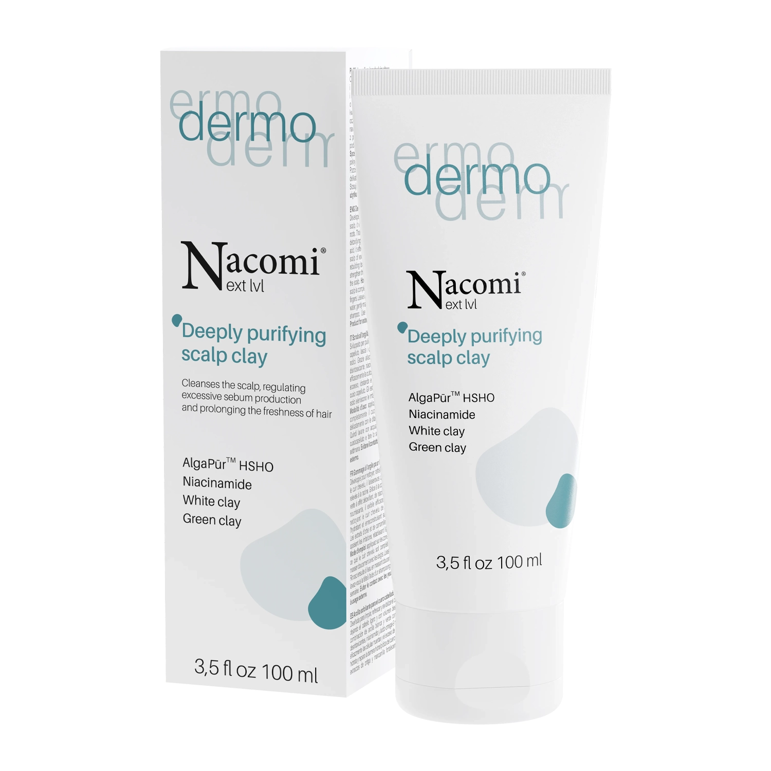 Nacomi – Dermo – mască exfoliantă pentru scalp, formulată pe bază de argilă cu proprietăți de absorbție a excesului de sebum și transpirație. Niacinamida reduce tendința de îngrășare a părului și îi oferă mai mult volum, iar alături de pantenol calmează inflamația, liniștește iritațiile (inclusiv pruritul scalpului) și susține bariera pielii. Formula este completată cu extract de urzică, cunoscut pentru efectele sale purifiante și pentru stimularea creșterii sănătoase a firelor de păr, precum și cu betaină hidratantă. Produsul lasă scalpul curat și revigorat, iar părul devine ușor, proaspăt și ridicat de la rădăcină.