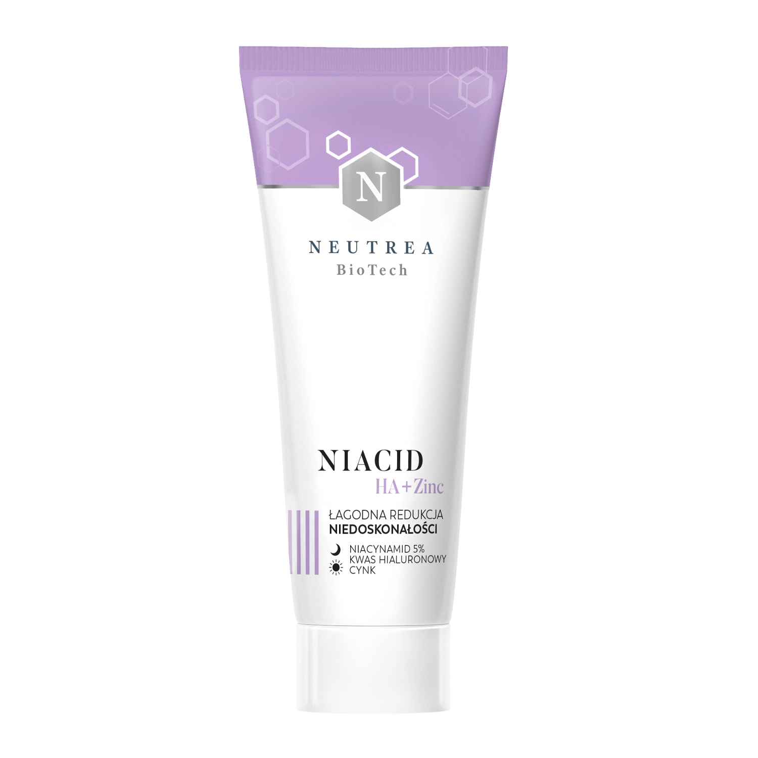 Neutrea - Niacid - Cremă de față împotriva imperfecțiunilor - o formulă potrivită pentru toate tipurile de piele, în special pentru pielea grasă și cu tendință acneică. Formula a fost compusă pentru a prezenta proprietăți antiinflamatorii și regenerative. Niacinamida are un efect anti-acnee și de întărire și reglează secreția de sebum. În plus, stimulează producția de ceramide. Adăugarea de oxid de zinc are un efect antibacterian și matifiază pielea, în timp ce hialuronatul de sodiu îmbunătățește hidratarea. Extractul de Aloe Vera, la rândul său, se ocupă de calmarea iritațiilor, în timp ce pantenolul vindecă și îmbunătățește bariera lipidică epidermică.