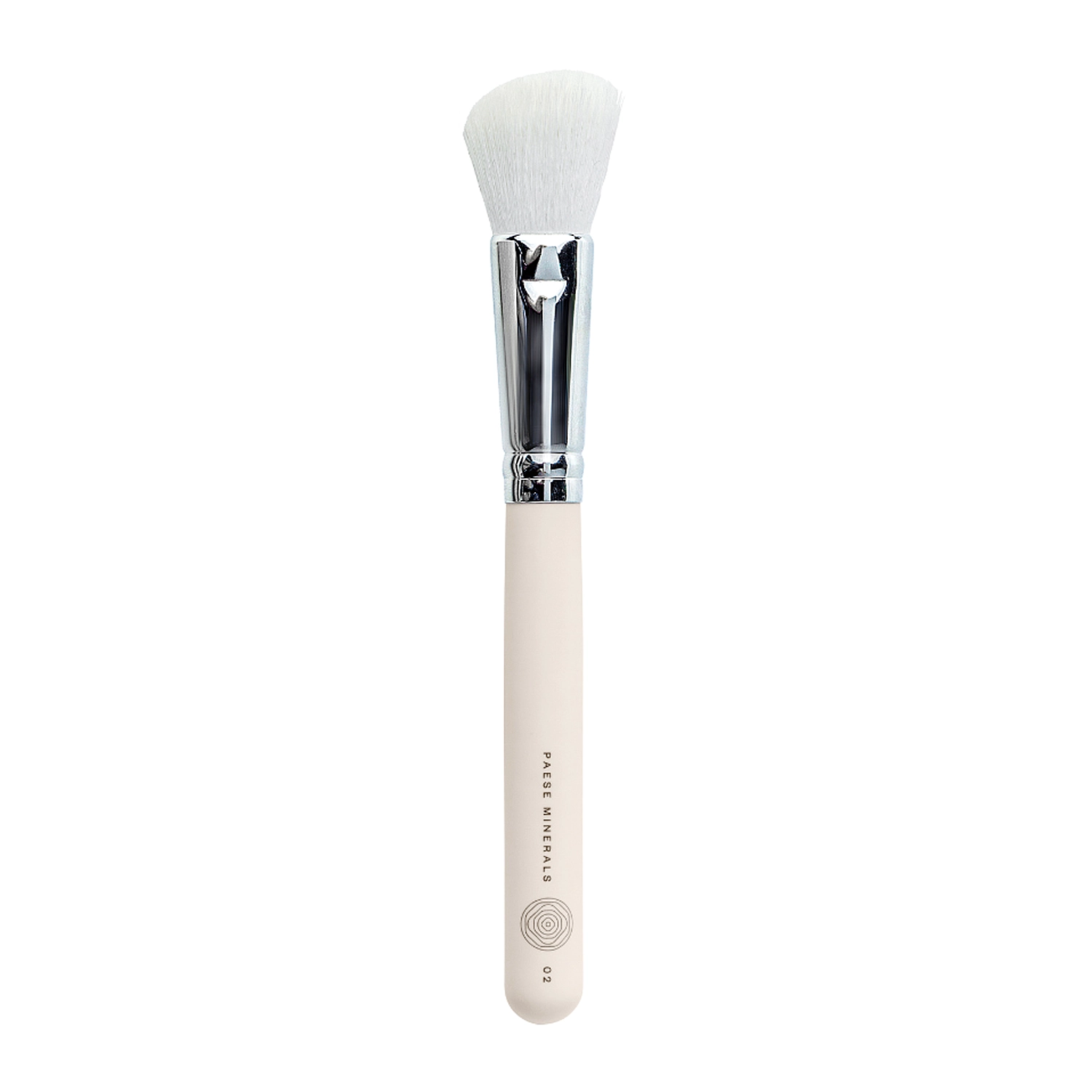 Pensulă pentru aplicarea fardurilor de obraz, a bronzatorului și a iluminatoruluiPaese - Minerals - Brush 02 - o pensulă ușor tăiată oblic, potrivită pentru aplicarea produselor minerale pentru conturarea feței, atât pe uscat, cât și pe umed. Datorită formei și densității firelor, distribuie cosmeticele uniform, fără a lăsa dungi. Este realizată manual din fibre sintetice, având un mâner din lemn și o manșetă metalică. Este foarte rezistentă și durabilă.