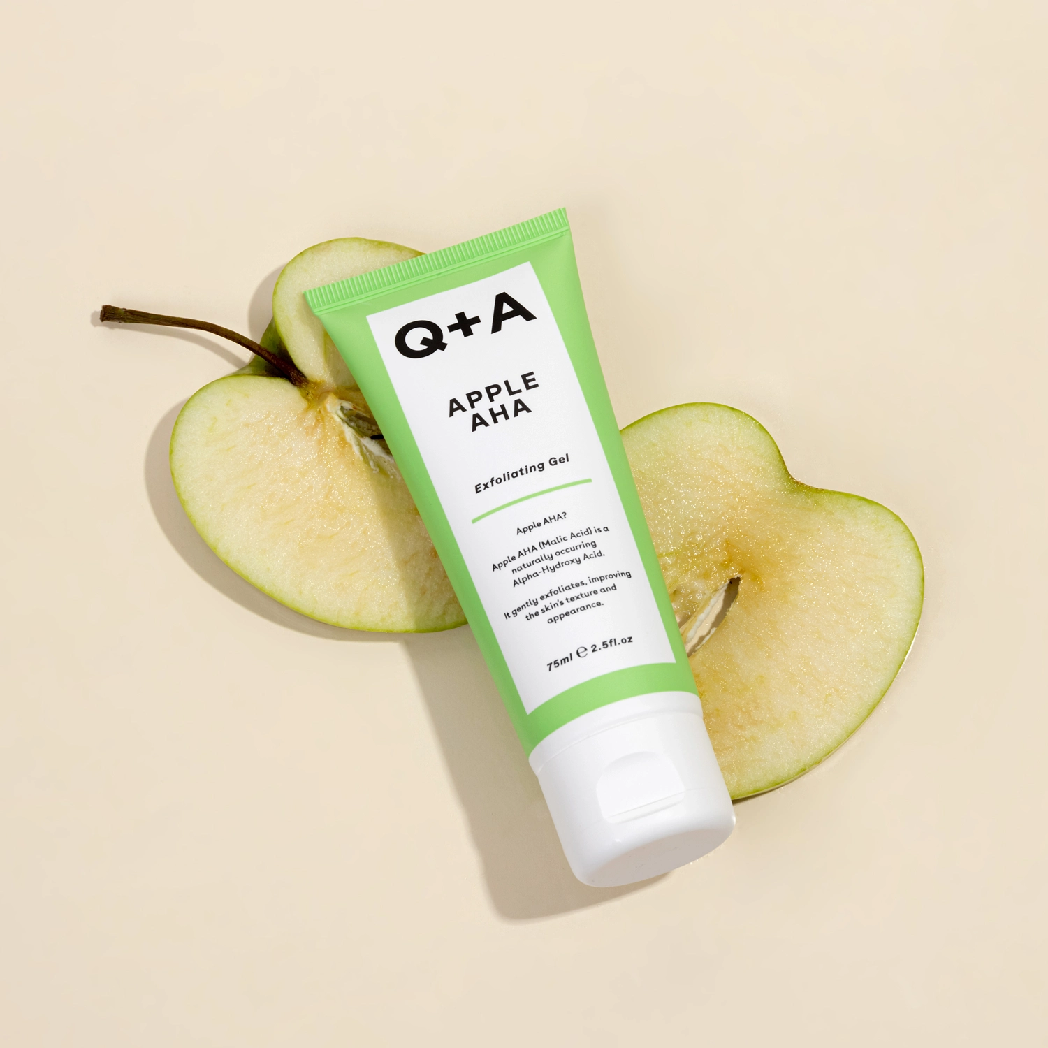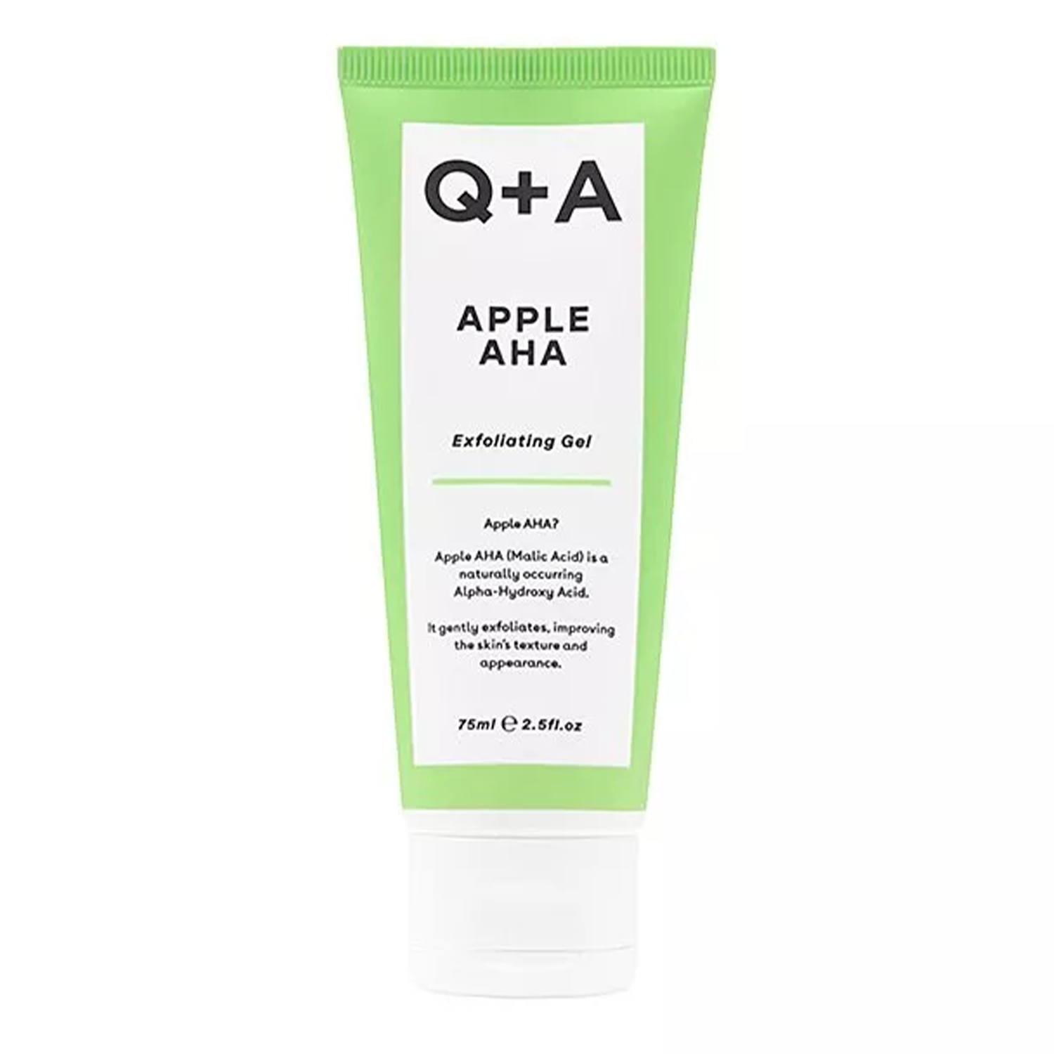 Q+A - Apple AHA - Gel exfoliant - gelul cu extract de fructe de măr are un puternic efect antioxidant și neutralizează efectul radicalilor liberi. Prezența acidului malic în cosmetice are un efect exfoliant și netezește liniile fine și ridurile, în timp ce acidul glicolic uniformizează tonusul pielii. Adaosul de acid lactic întărește bariera protectoare a pielii, în timp ce extractul de aloe vera calmează și ameliorează iritațiile.