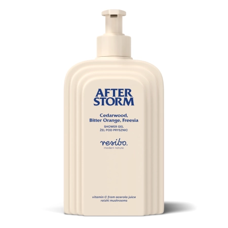 Resibo – After Storm – Cedarwood, Bitter Orange, Freesia – gel de duș delicat, ideal și pentru pielea sensibilă, cu un parfum citric-lemnos ce combină lemnul de cedru, portocala amară și freziile. Formula sa se bazează pe agenți de curățare blânzi, care îndepărtează impuritățile și sebumul fără a afecta filmul hidrolipidic natural al pielii. Emolientul derivat din untul de murumuru susține regenerarea și hrănirea pielii în timpul dușului, în timp ce glicerina crește nivelul de hidratare în stratul cornos. Extractul de Reishi și vitamina C oferă protecție antioxidantă, acțiune antiinflamatoare și contribuie la uniformizarea tonului pielii. Gelul curăță, revigorează și nu usucă pielea. Conține 97% ingrediente naturale, iar formula este vegană.