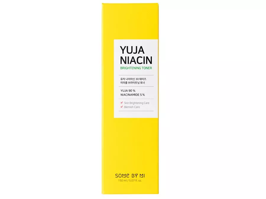 Some By Mi - Yuja Niacin Brightening Toner - un toner hidratant și iluminator pe bază de extract de fructe de yuzu, care reprezintă 90% din produs, ce conține o concentrație mare de vitamina C, are un puternic efect iluminator și antioxidant și întârzie procesul de îmbătrânire. De asemenea, conține 5% niacinamidă, care uniformizează tonusul pielii, reglează glandele sebacee și accelerează vindecarea, precum și adenozină, care are un efect de iluminare și netezire. În plus, produsul este îmbogățit cu pantenol hidratant și calmant și cu vitamina C sub formă de sare de sodiu de fosfat de ascorbil, care are un efect iluminator și antioxidant, stimulează sinteza colagenului și a elastinei și întărește vasele de sânge.