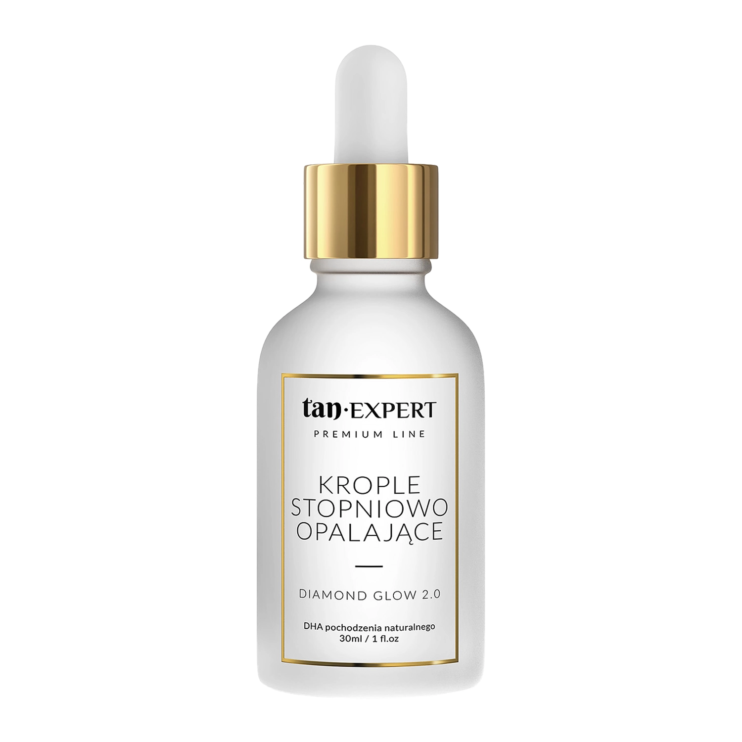 TanExpert – Diamond Glow 2.0 – autobronzant facial sub formă de picături, ce poate fi aplicat ca atare sau amestecat cu crema ta preferată. Conține DHT, ingredient cu efect bronzant care oferă pielii o nuanță aurie, naturală. Glicerina, vitamina E și extractele vegetale (castravete și flori de arnică) hidratează, protejează împotriva radicalilor liberi și calmează inflamațiile. După aplicare, pielea capătă un bronz auriu, fără expunere la soare. Formula are o textură uleioasă, densă, care permite aplicarea uniformă, fără urme sau pete. Produs vegan, cu parfum delicat.