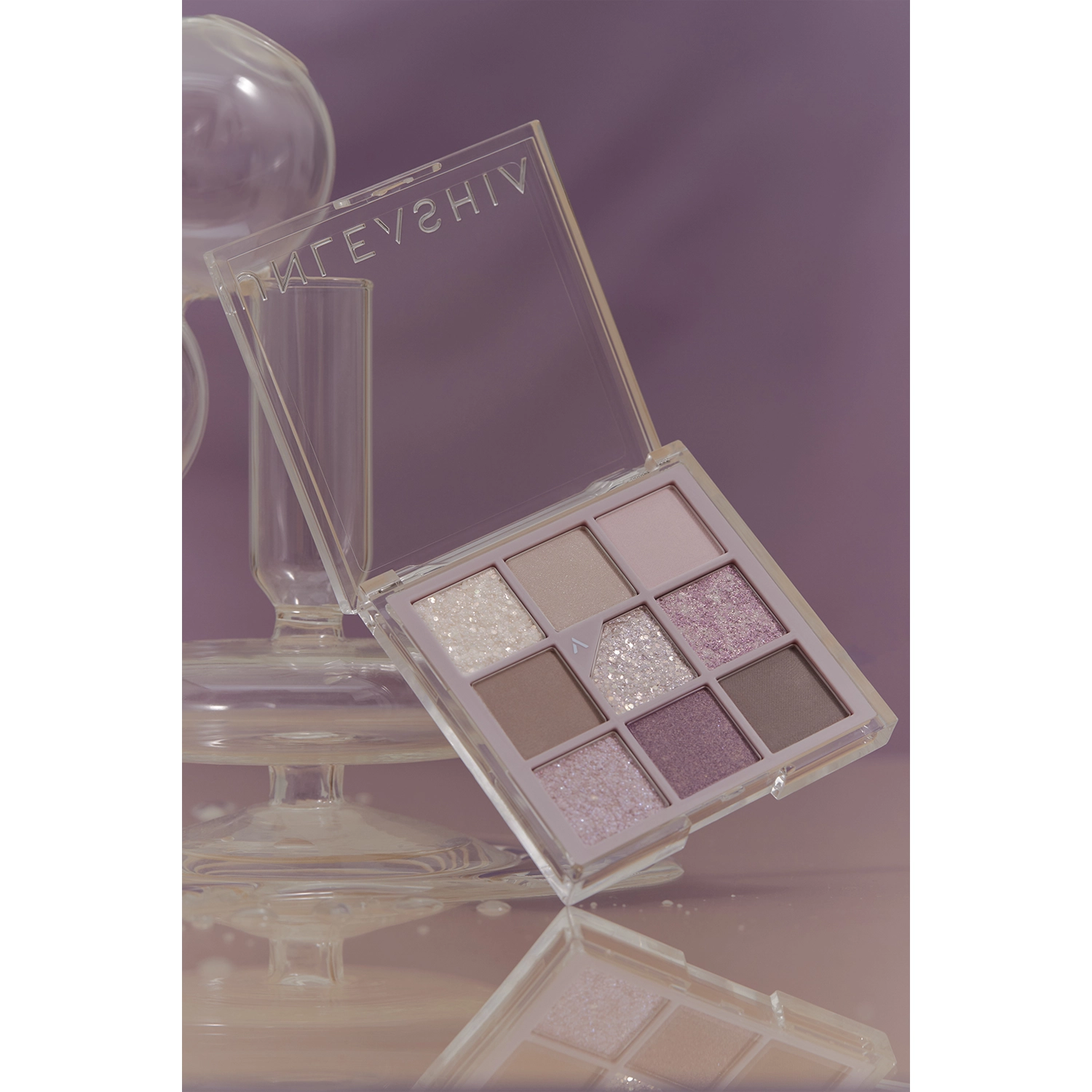 - Paletă de 9 farduri mate și strălucitoare în nuanța de lavanda