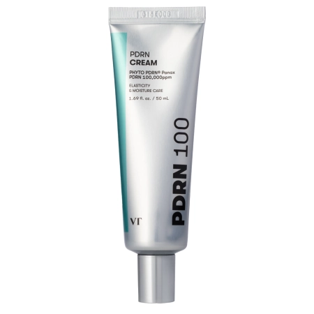 VT Cosmetics – PDRN Cream 100 este o cremă pentru față formulată pentru a spori vitalitatea pielii și a-i oferi un aspect mai luminos, susținând totodată regenerarea acesteia. PDRN-ul vegan din ginseng coreean utilizat în formulă asigură o hrănire profundă și îmbunătățește elasticitatea pielii, iar micile capsule albastre Blue Azulene Capsules integrate în textură au efect calmant și regenerant. Combinația dintre cele cinci ceramide și alantoină oferă hidratare intensă și întărește bariera de protecție a pielii. Crema este ambalată într-un tub practic și este potrivită pentru îngrijirea zilnică a tuturor tipurilor de piele, inclusiv a pielii sensibile.